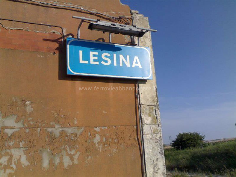 Il cartello con la denominazione della ex-stazione di Lesina, ancora ben conservato (M. Pesola, 2011)