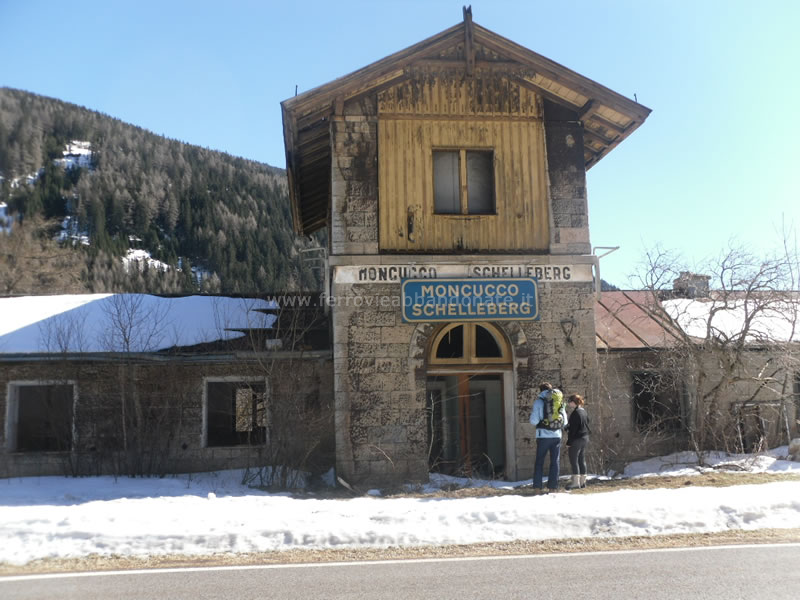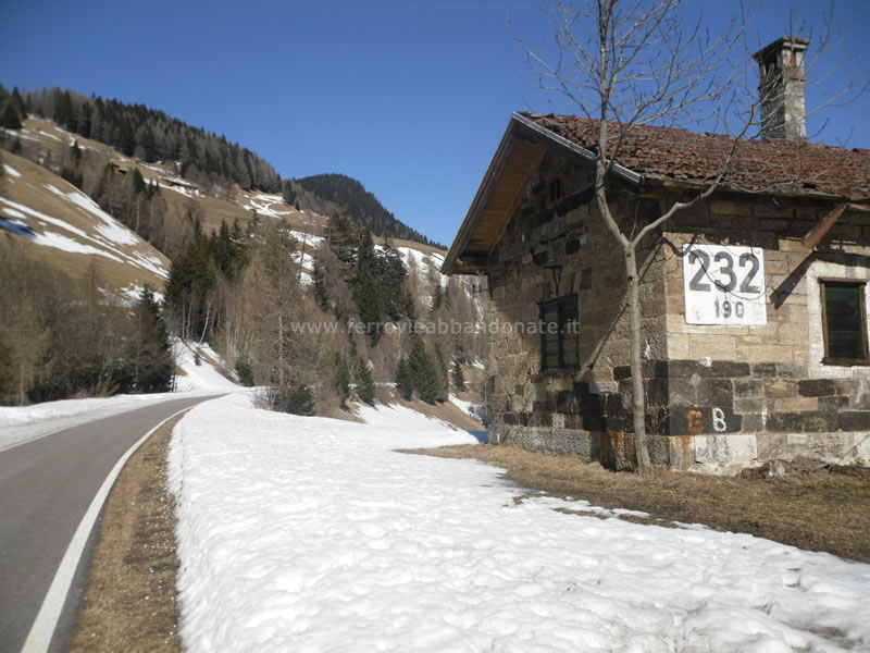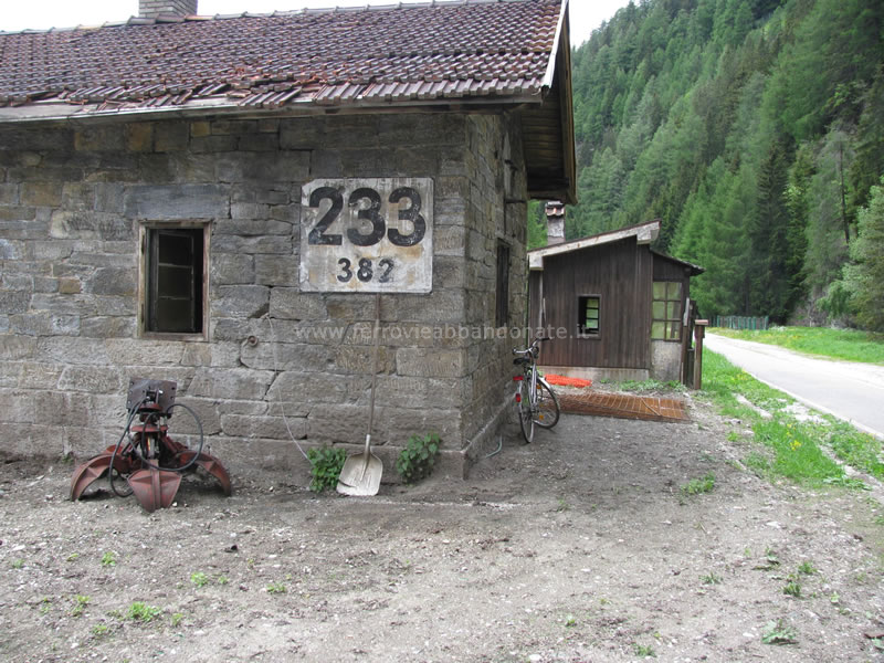 Ex-casello nei pressi della stazione di Moncucco; sulla sinistra il sedime convertito in pista ciclopedonale sale verso il Brennero (N. Chinelli, 2013)