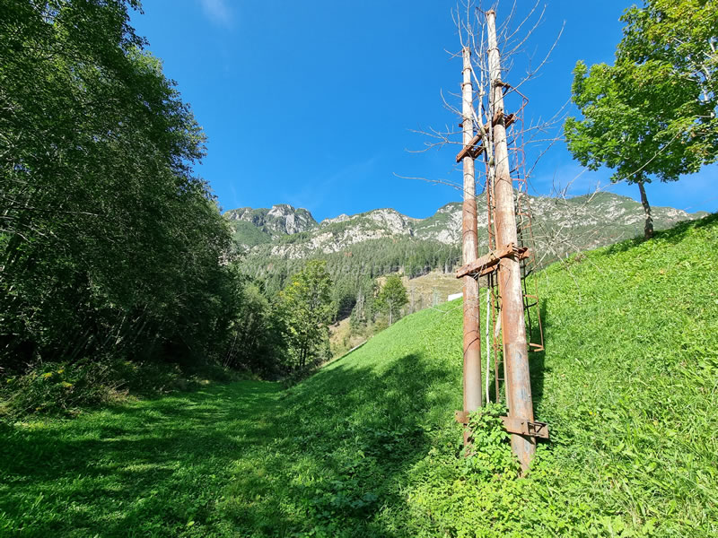 Sede ferroviaria trasformata in greenway tra la fermata di Fleres e la stazione di Moncucco. Sopravvivono i vecchi segnali semaforici (N.H. Hjøllund, 2023)