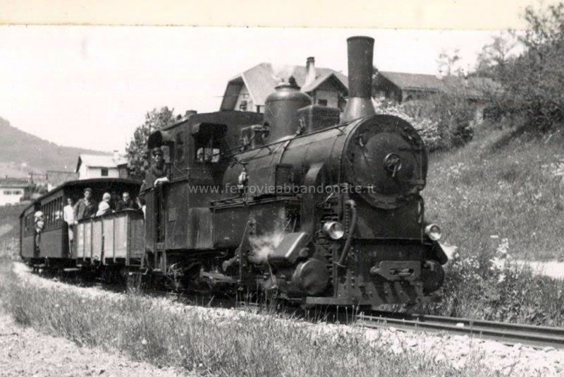 Altra immagine storica di un treno diretto a Plan in corsa nei pressi di Ortisei nel 1958 (archivio J. Klein)