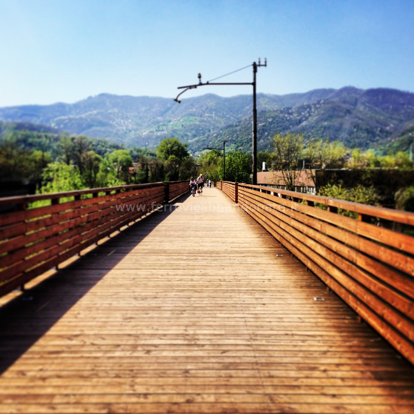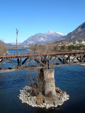 Ponte ferroviario sul fiume Adda recuperato ad uso ciclopedonale. Ancora evidenti i resti della palificazione ferroviaria. (E. Fumagalli, 2013)