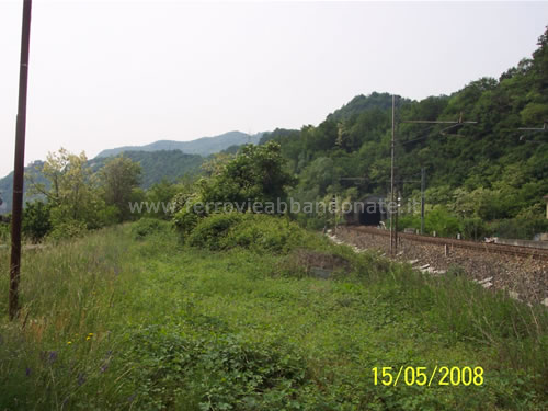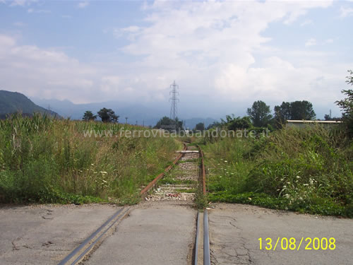 Termine del tratto di linea abbandonato nei pressi di Calolziocorte. A destra la galleria della nuova linea a doppio binario (G. P. Visconti, 2008)