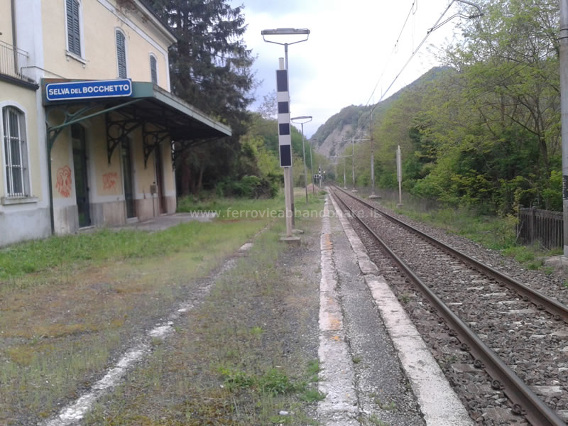 Ex-fermata di Selva del Bocchetto pochi mesi dopo la chiusura: l'area attorno al F.V. è stata recintata (C. Setti, 2015)