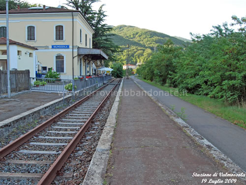 Ex-stazione di Valmozzola, convertita in bar/ristorante. Il binario lato stazione è stato conservato per ricordare il passato ferroviario dell'edificio, quello esterno è stato convertito in pista ciclo-pedonale (M. Mazzotta, 2009)