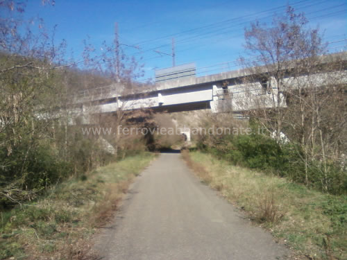 Ex-sedime divenuto un percorso ciclo-pedonale che sottopasso il nuovo tracciato tra Valmozzola e Berceto (O. Malatesta, 2011)