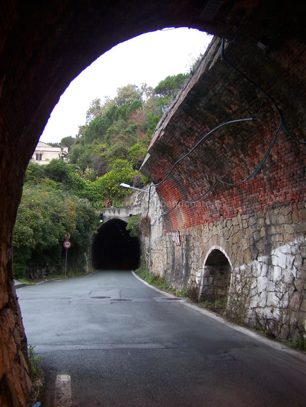 Imbocco nord della galleria Lardea, riutilizzata per la viabilità stradale, nei pressi di Riva Trigoso (A. Bruzzone, 2015)