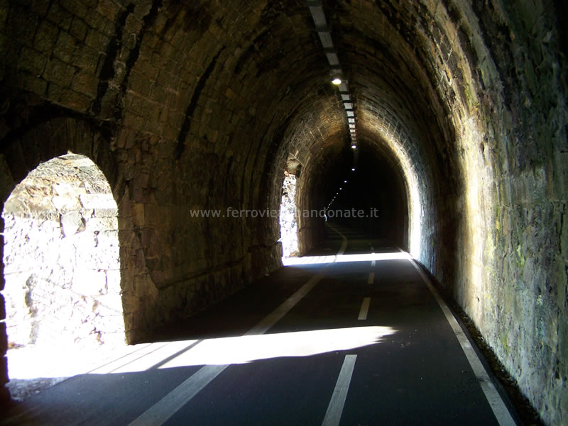 Interno di una galleria tra Framura e Bonassola; l'ex-sedime è stato convertito in pista ciclo-pedonale (A. Bruzzone, 2015)