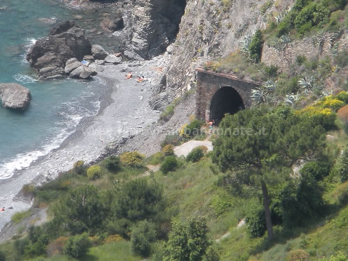 Galleria abbandonata nei pressi del mare tra Vernazza e Corniglia, oggi utilizzata dai bagnanti (E. Botta, 2010)