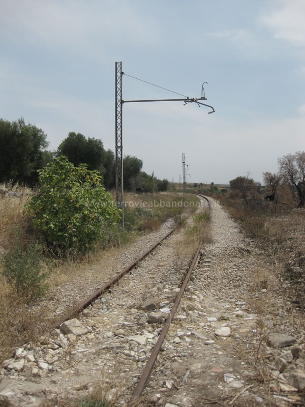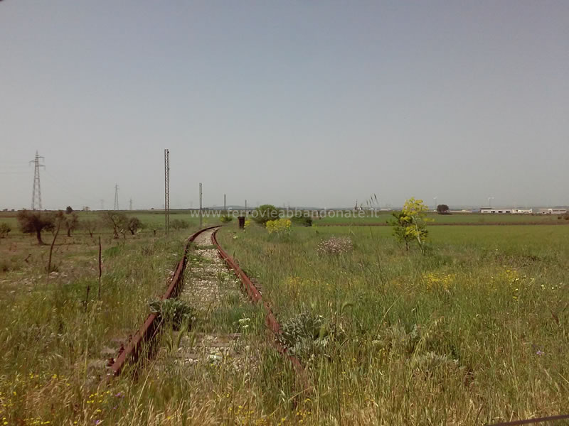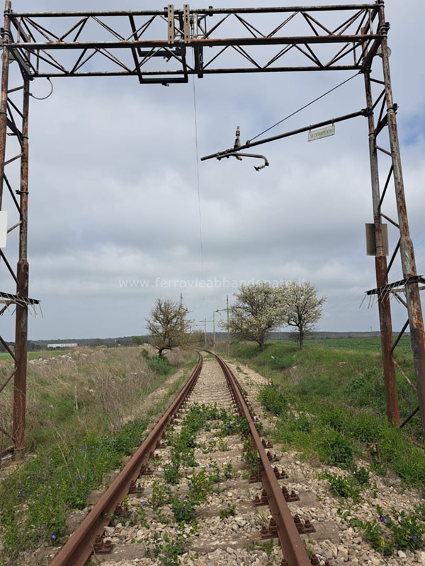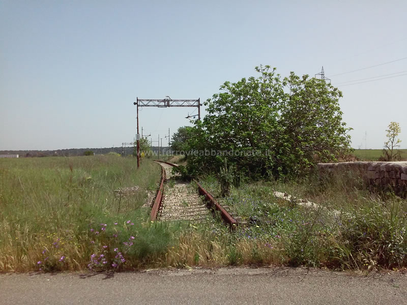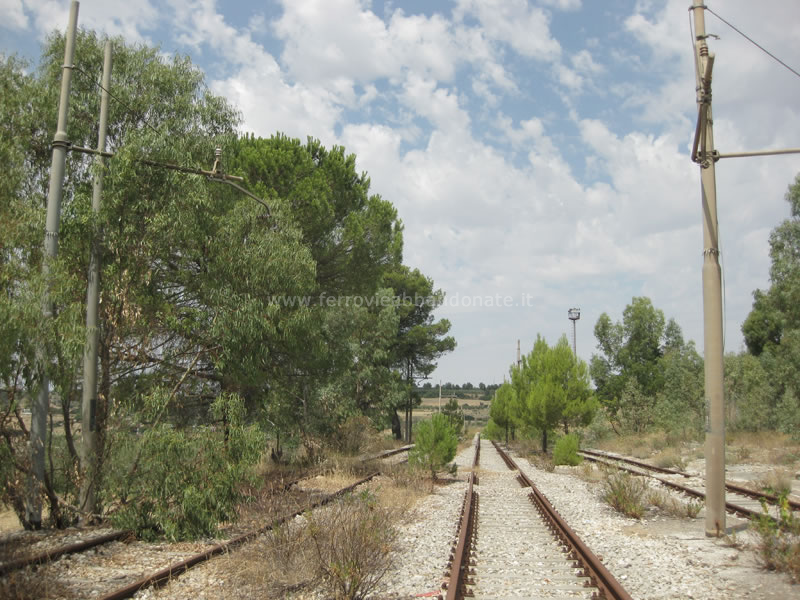 Ex-sedime in località Montecamplo, tra Castellaneta e Palagianello, con il binario ancora in buone condizioni ma la linea aerea smantellata (G. D'Ambrosio, 2012)