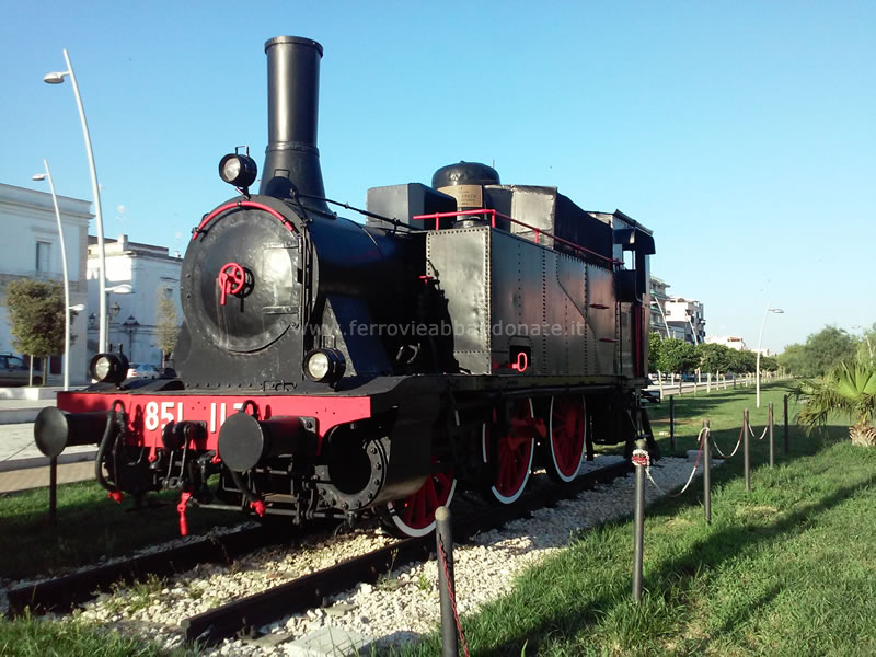 Locomotiva FS 851.113, monumentata nel piazzale della ex-stazione di Palagianello (M. Ferrante, 2015)
