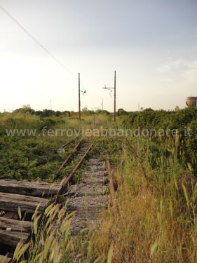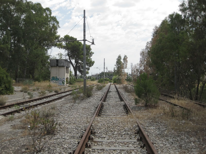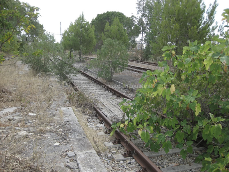 Ex-stazione di Castellaneta (vecchia), con i 3 binari abbandonati e il marciapiede invasi dalla vegetazione spontanea (G. D'Ambrosio, 2012)