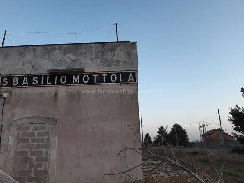 Ex-stazione di S.Basilio Mottola, in stato di abbandono e invasa dalla vegetazione spontanea (V. Secondo, 2010)