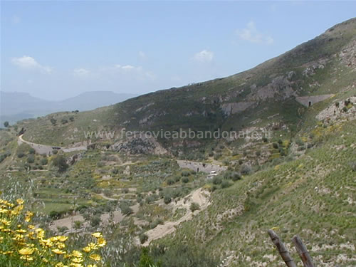 Ex-sedime nel tratto a cremagliera tra Cavalcatore e Assoro, con uno spettacolare susseguirsi di tornanti, gallerie e viadotti (R. Russo, 2011)