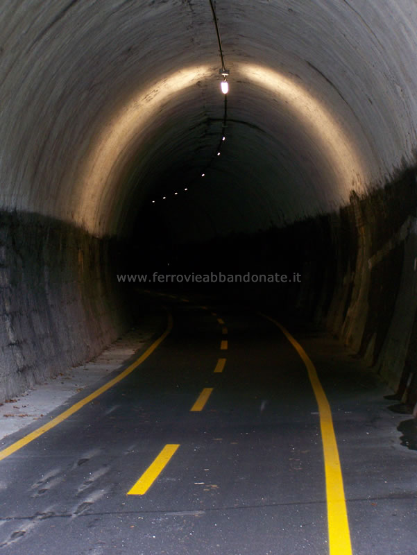 Interno di una galleria, illuminata per il passaggio di pedoni e ciclisti, tra Resiutta e Chiusaforte (A. Bruzzone, 2014)