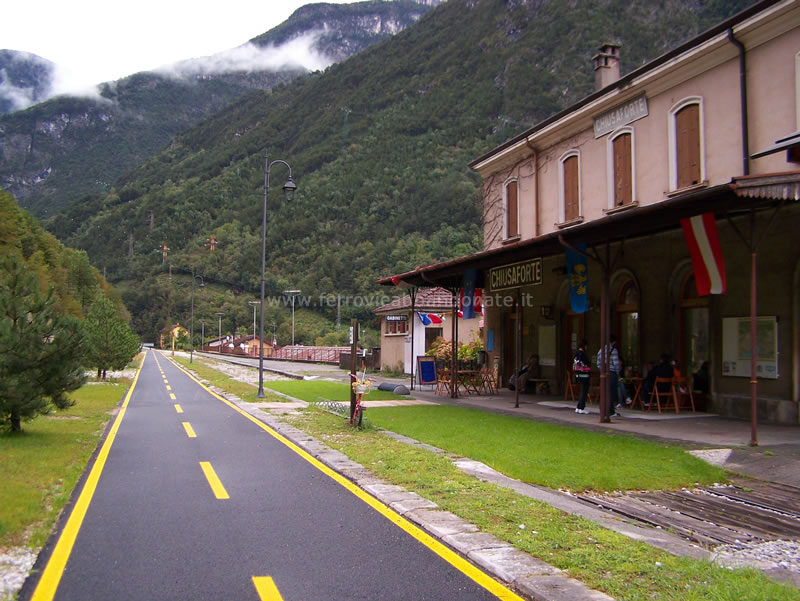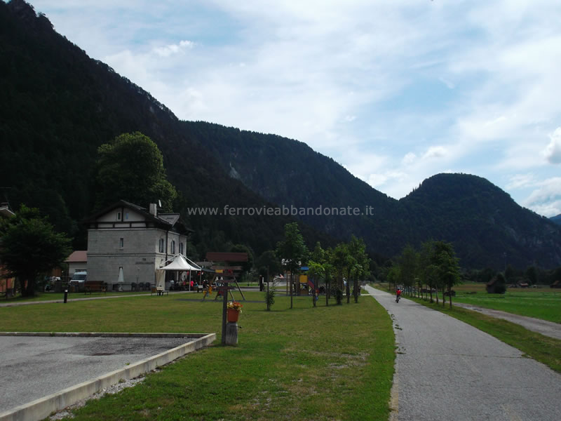 Ex-stazione di Chiusaforte, attrezzata come punto di sosta e ristoro lungo il percorso ciclopedonale (A. Bruzzone, 2014)