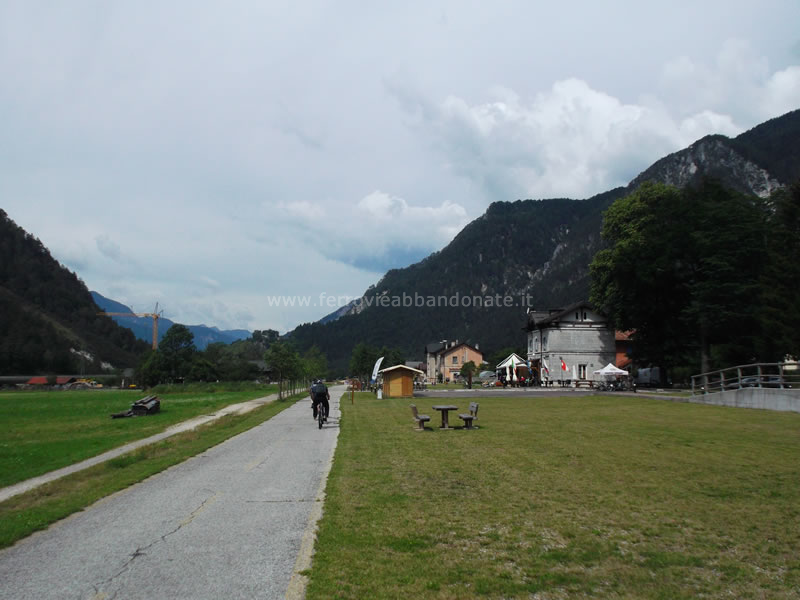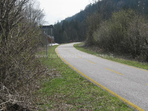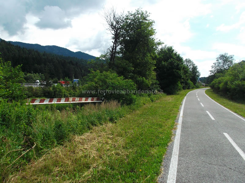 Ex-fermata di Tarvisio Città, con il marciapiede ancora ben evidente, a delimitare la pista ciclo-pedonale realizzata sul vecchio sedime (A. Uranic, 2015)