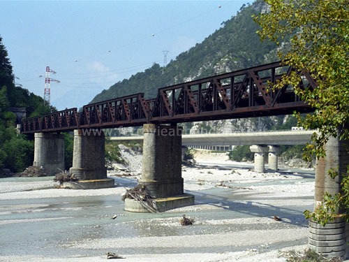 Ex-viadotto ferroviario in ferro sul fiume Fella presso Roveredo (A. Marcarini, 2005)