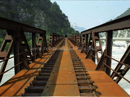 Ex-viadotto ferroviario in ferro, privo di armamento, sul fiume Fella presso Roveredo (A. Marcarini, 2005)