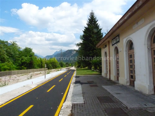 Pista ciclopedonale realizzata sull'ex-sedime tra i marciapiedi della vecchia stazione di Resiutta (A. Bruzzone, 2014)