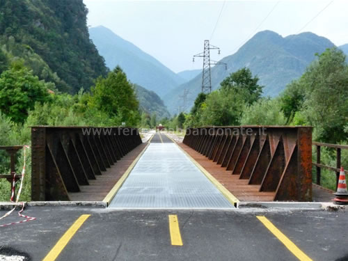 Ponte di Muro, a travata metallica sul F. Fella, riutilizzato per il passaggio della pista ciclo-pedonale (G. Vosca, 2015)