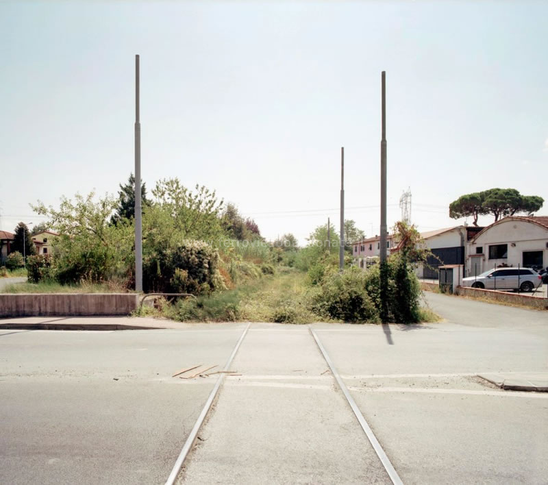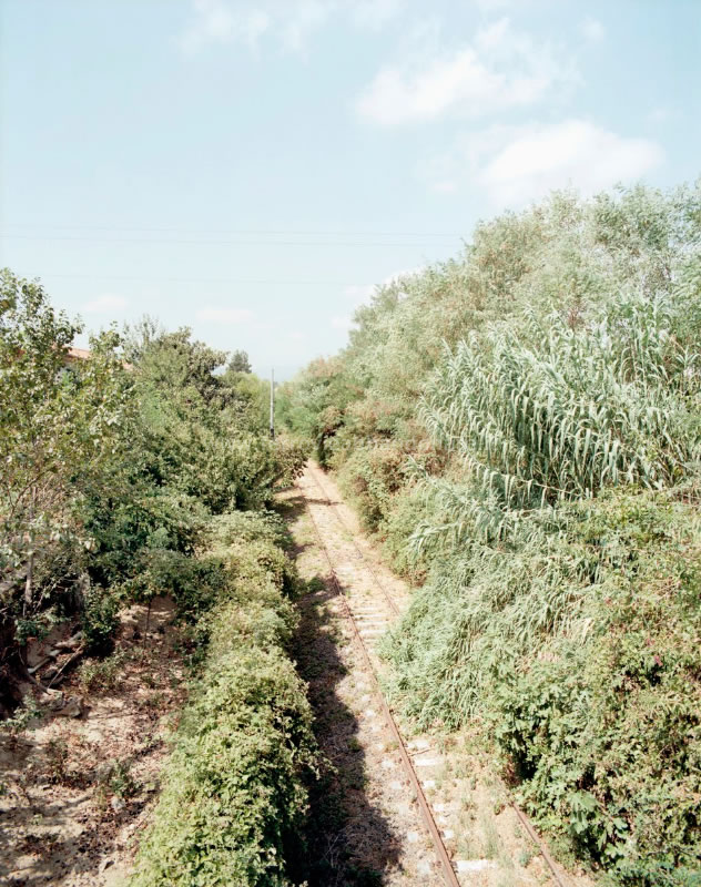 Attraversamento alla periferia di Ponzano Magra; il sedime è ancora armata ma invaso dalla vegetazione spontanea (A. Positano, 2012)
