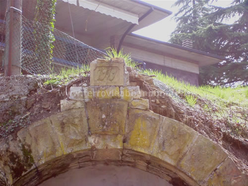Portale d'ingresso della galleria di Serramazzoni, che reca ancora incisa la data di costruzione (M. Martelli, 2008)