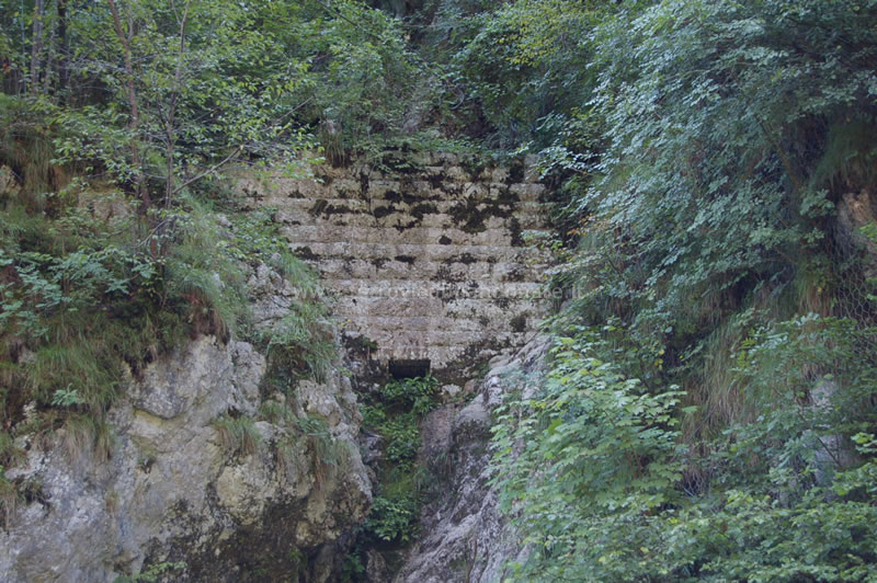 Muro di sostegno dell'ex-sedime tra Stupizza e il confine di stato (S. Piani, 2012)