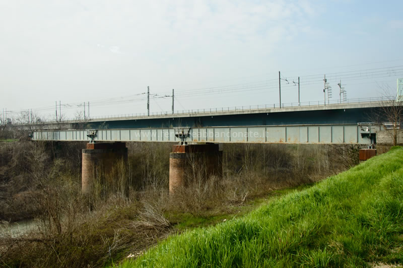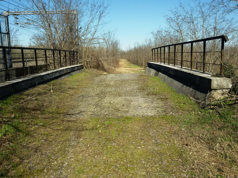 Ponte in ferro sullo scolo Lametta, tra le ex-fermate di Crocetta e Amola, già predisposto per il doppio binario (A. Giordano, 2014)
