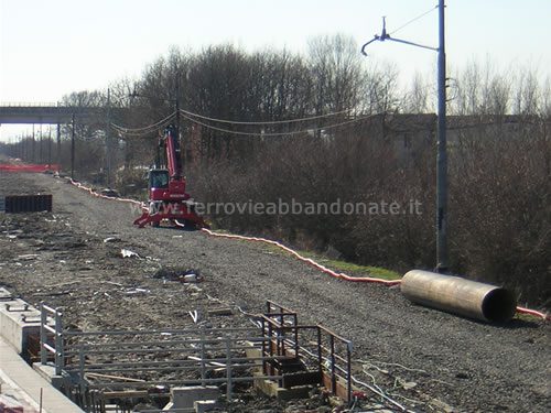 Il binario, oggi rimosso, della vecchia linea (sulla destra) accanto a quello della nuova (G. Ferrari, 2005)