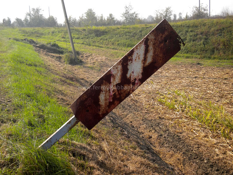 Vestigia di segnaletica lungo il sedime dismesso tra le ex-fermate di Crocetta e Amola (A. Giordano, 2014)