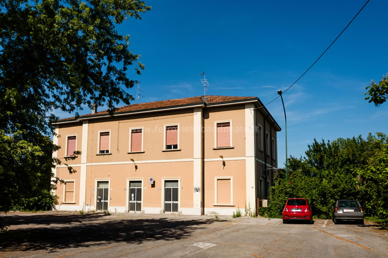 Fabbricato di servizio della stazione di S. Giovanni in Persiceto lungo la vecchia linea (A. Giordano, 2015)