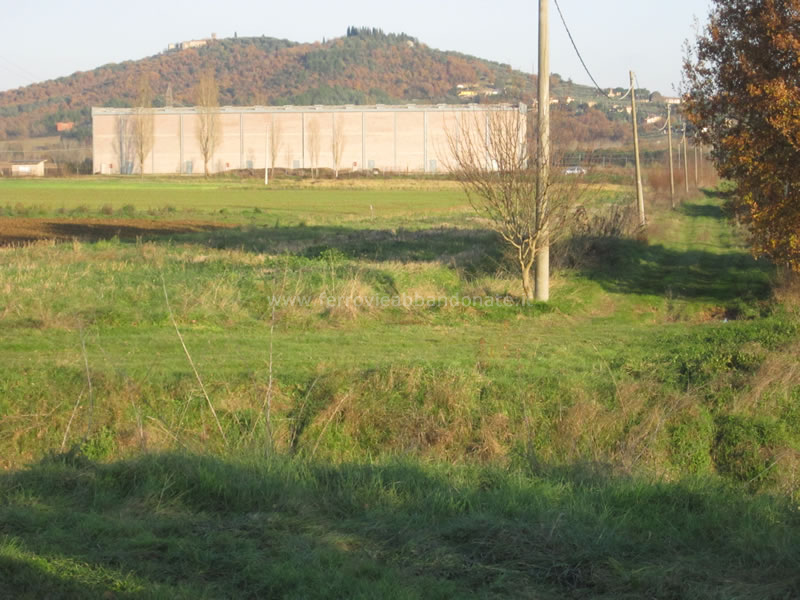 Area in cui sorgeva l'ex-fermata di Pietrafitta-Fontignano, di cui non restano tracce a causa delle opere idrauliche realizzata nella zona (A. Stigliani, 2016)