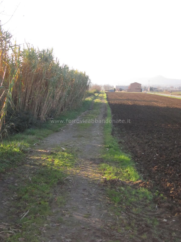 Vecchio sedime che si confonde tra i campi nei pressi dell'ex-fermata di Pietrafitta-Fontignano (A. Stigliani, 2016)