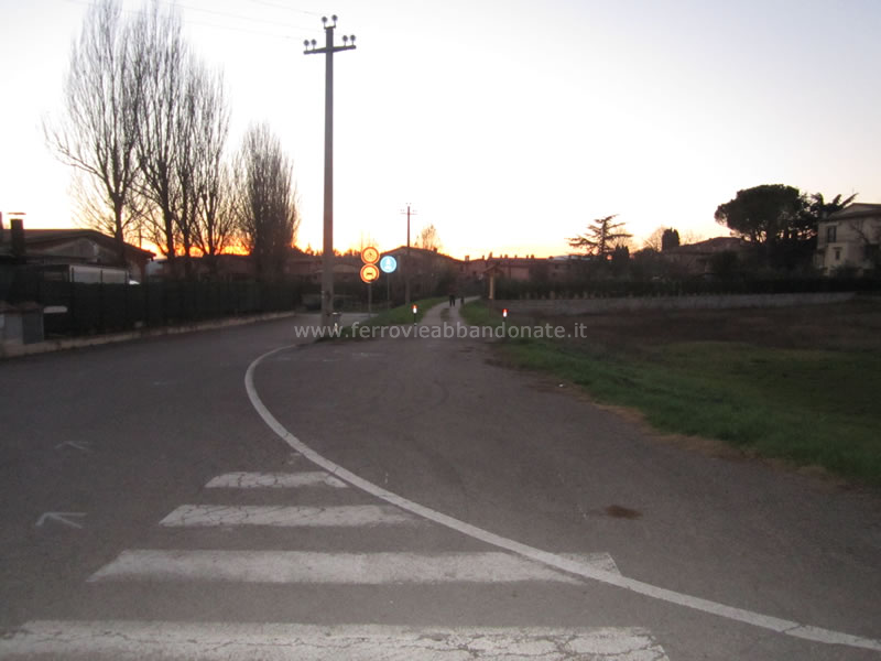 Breve tratto di ex-sedime ancora armato in uscita dalla stazione di Ellera-Corciano (A. Stigliani, 2016)