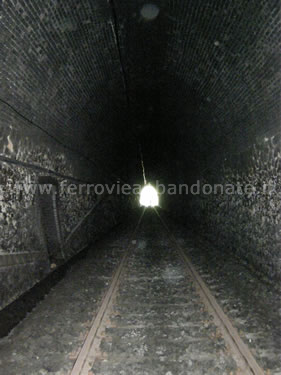 Interno della galleria Sansinato, tra Caraffa-Sarrottino e Catanzaro Sala, con il binario ancora posato (V. Lascala, 2009)