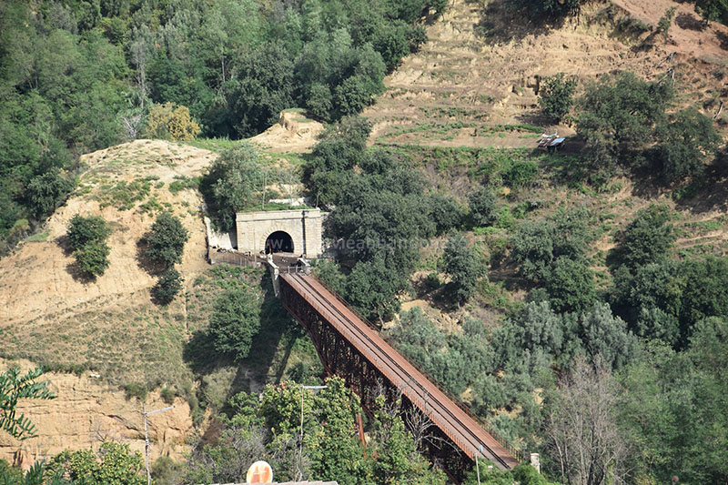 Viadotto in ferro sul torrente Torbido (viadotto Caruso) e adiacente galleria vista dall'abitato di S. Eufemia d'Aspromonte (A. Stigliani, 2024)
