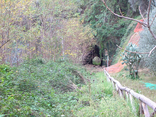 Imbocco di una vecchia galleria nei pressi di Sant'Eufemia d'Aspromonte. Si noti il segnale a disco (F. Forgione, 2010)