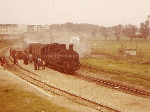 Immagine storica della stazione di Palmi (FC) nel 1970, con l'arrivo di un treno passeggeri (A. Moretti Degli Adimari, 1970)