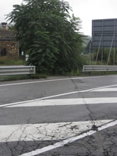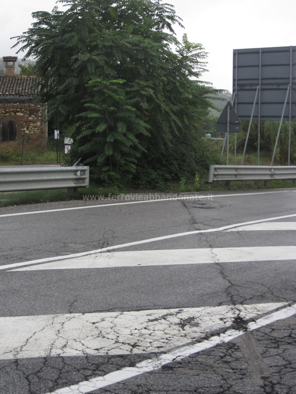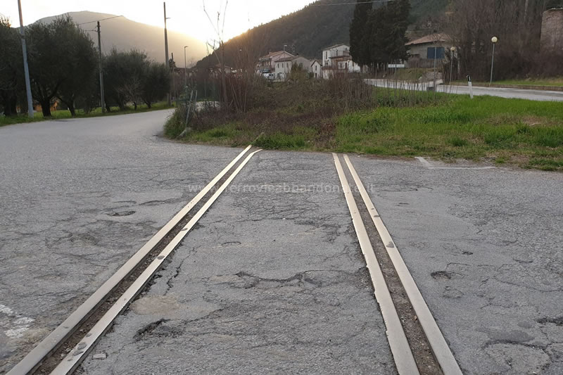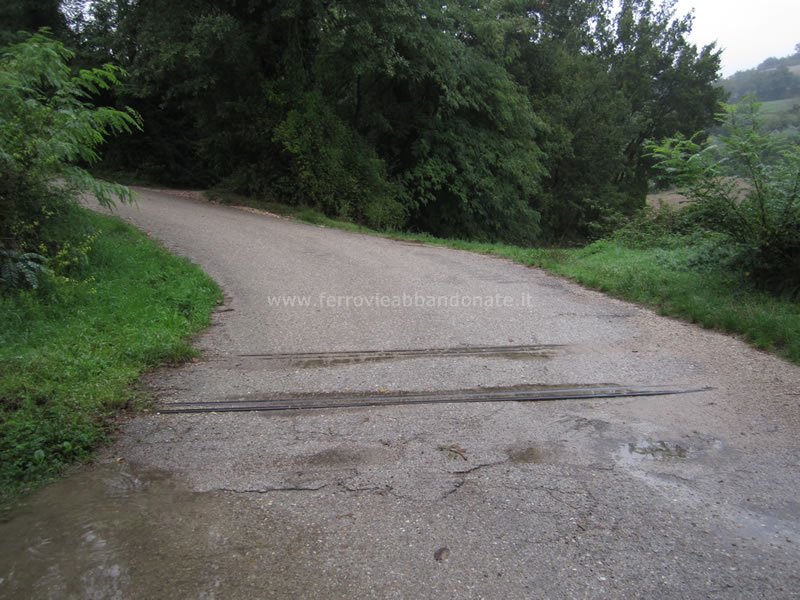 Binario coperto dall'asfalto in corrispondenza dell'attraversamento della SS 73bis, tra Calmazzo e Canavaccio (A. Stigliani, 2013)