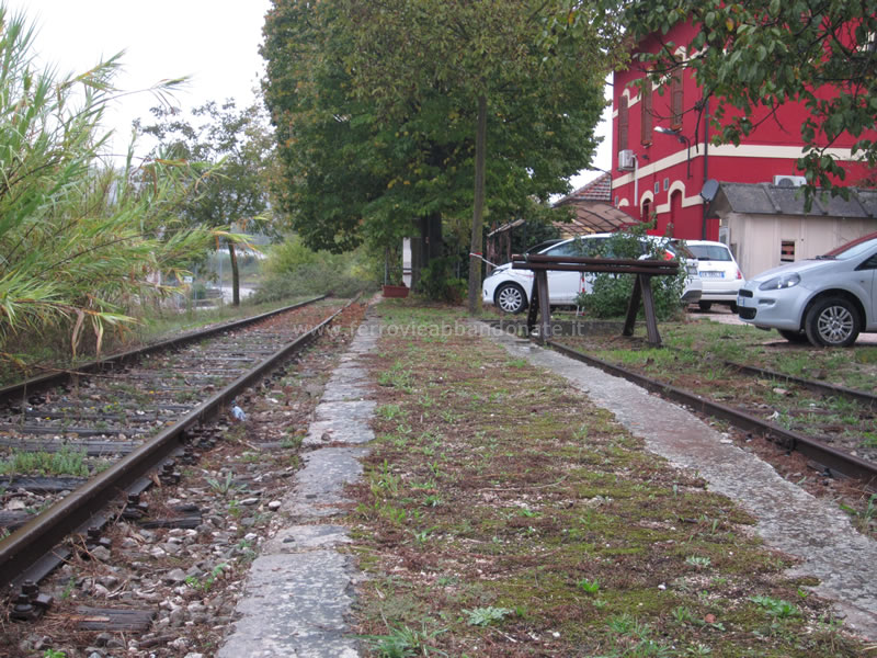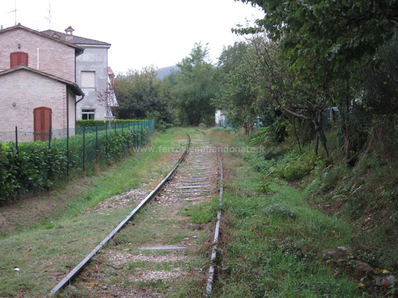 Piazzale interno della stazione di Fermignano, con vista in direzione di Pergola, dove la linea proseguiva fino al 1944 (A. Stigliani, 2013)