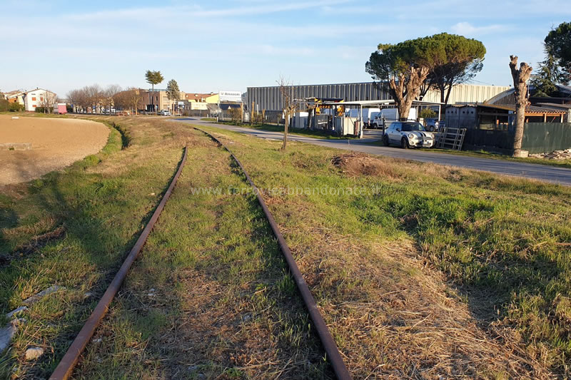 Binario abbandonato tra la stazione di Saltara-Calcinelli e la fermata di Serrungarina-Tavernelle (A. Marcolin, 2020)