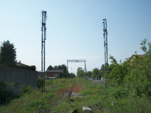 Ex-sedime ancora armato ma privo della linea aerea nei pressi di Asseggiano, in direzione di Mestre (M. Figus, 2011)