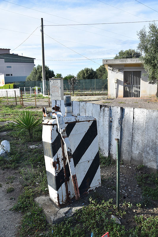 Sistema di azionamento delle barriere del passaggio a livello con la SP 1 nei pressi di Gioia Tauro Est. Le sbarre sono state rimosse. (A. Stigliani, 2024)