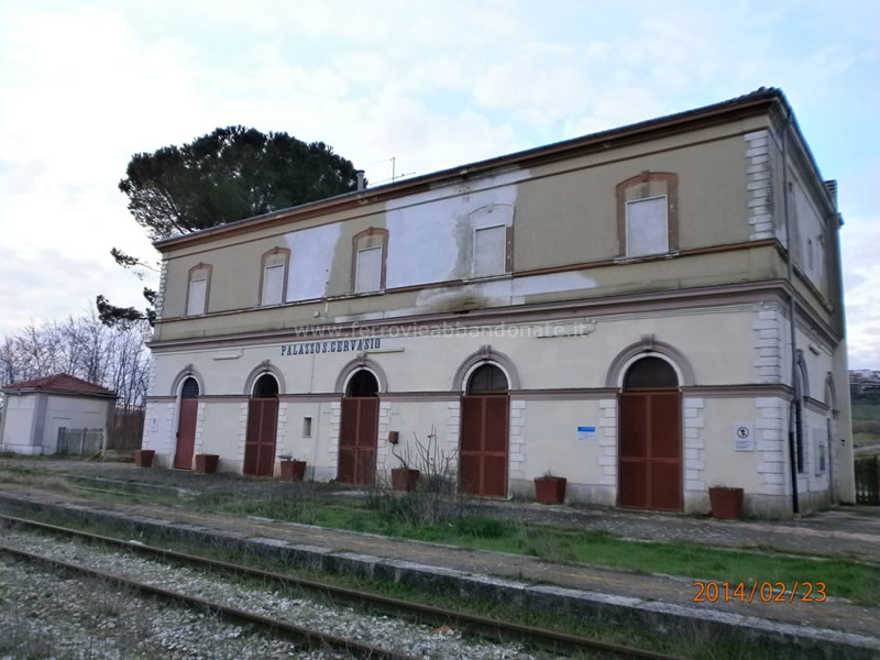 Ex-stazione di Palazzo S. Gervasio-Montemilone, con le finestre del primo piano murate (V. Romanelli, 2014)