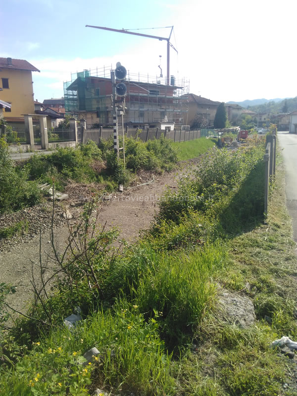 Sedime dismesso in corrispondenza del passaggio a livello di via Sottolusignana a Gozzano, in direzione Bolzano N. A sinistra il binario dismesso per Alzo (B. Boschetti, 2019)