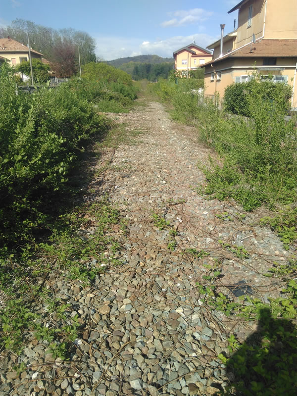 Ex-sedime nelle vicinanze della vecchia stazione di Gozzano, parzialmente invaso dalla vegetazione infestante (B. Boschetti, 2019)