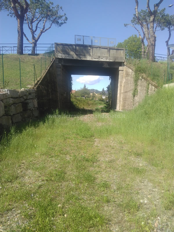 Tracciato dismesso a Gozzano, con un ponticello pedonale costruito successivamente alla chiusura del tratto (B. Boschetti, 2019)
