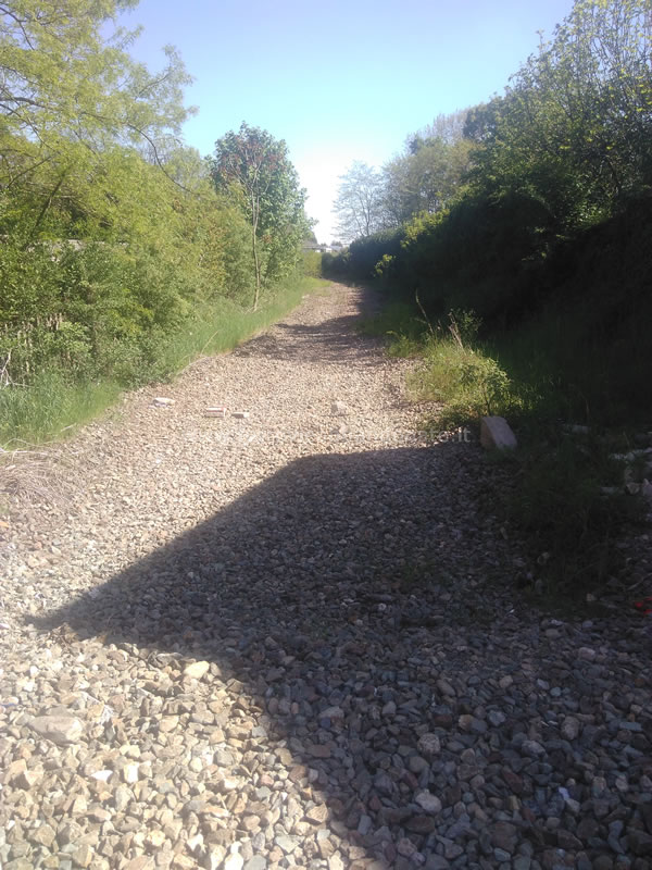 Ex-sedime a Gozzano, in direzione Borgomanero, con la massicciata ferroviaria ben evidente (B. Boschetti, 2019)