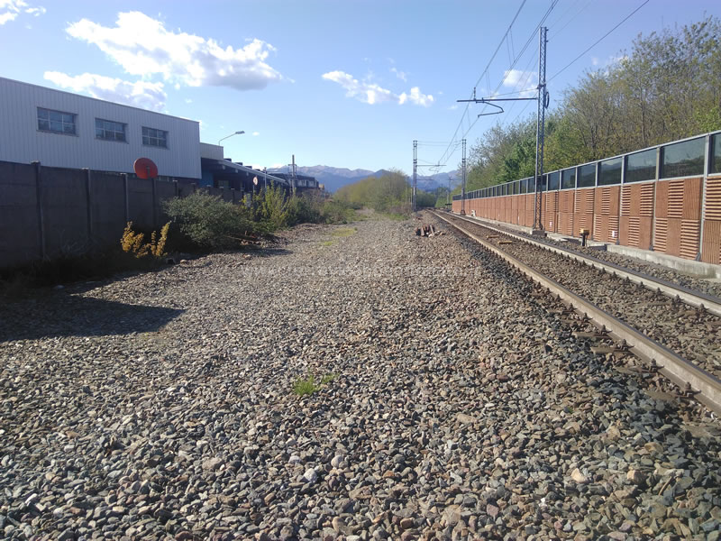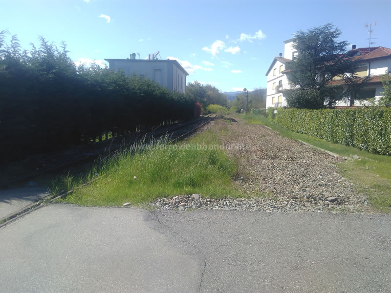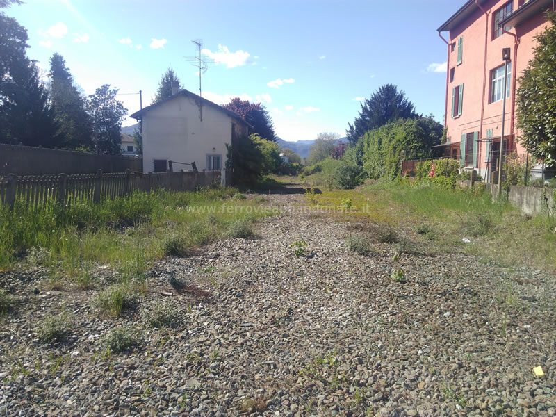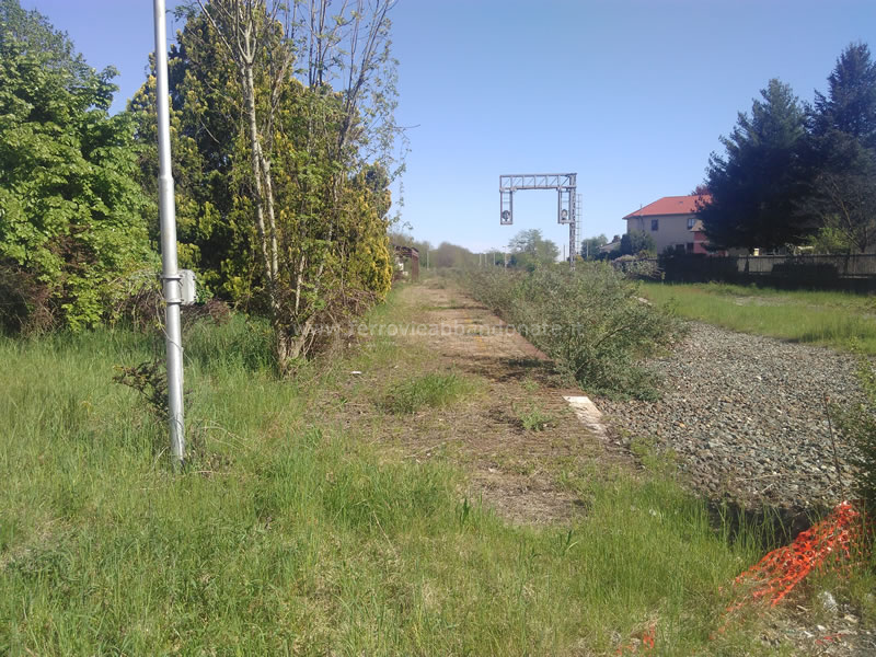 Sedime dismesso nei pressi della ex-stazione di Gozzano, in direzione Borgomanero: sulla destra si intravede il cancello della linea per Alzo (B. Boschetti, 2019)