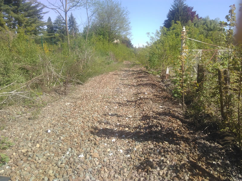 Ex-sedime con la massicciata ben evidente nei pressi del passaggio a livello di via Parona, all'ingresso della vecchia stazione di Gozzano (B. Boschetti, 2019)